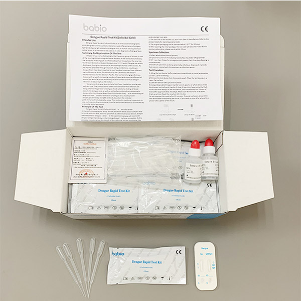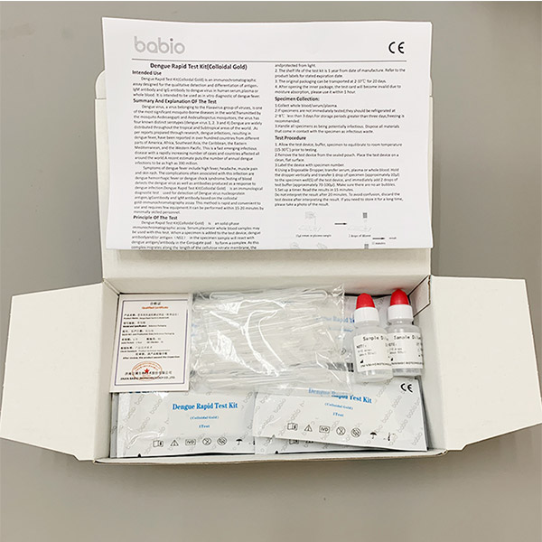 डेंग्यू रॅपिड टेस्ट किट (कोलोइडल गोल्ड) एक इम्युनोक्रोमॅटोग्राफिक परख आहे जो मानवी सीरम, प्लाझ्मा किंवा संपूर्ण रक्तातील विषाणूसाठी अँटीजेन -आयजीएम अँटीबॉडी आणि आयजीजी अँटीबॉडीच्या गुणात्मक शोध आणि भिन्नतेसाठी डिझाइन केलेले आहे.