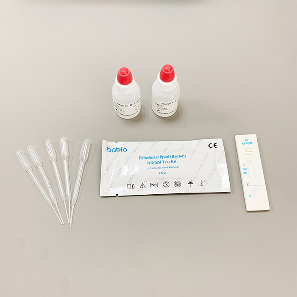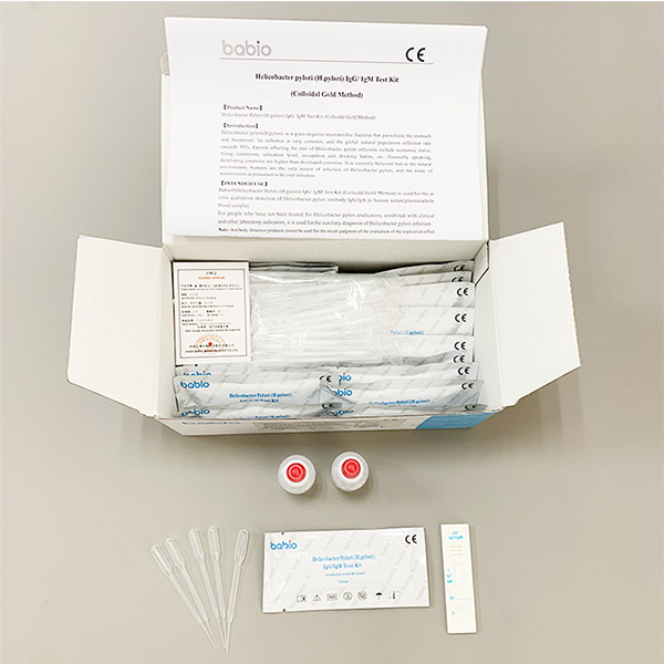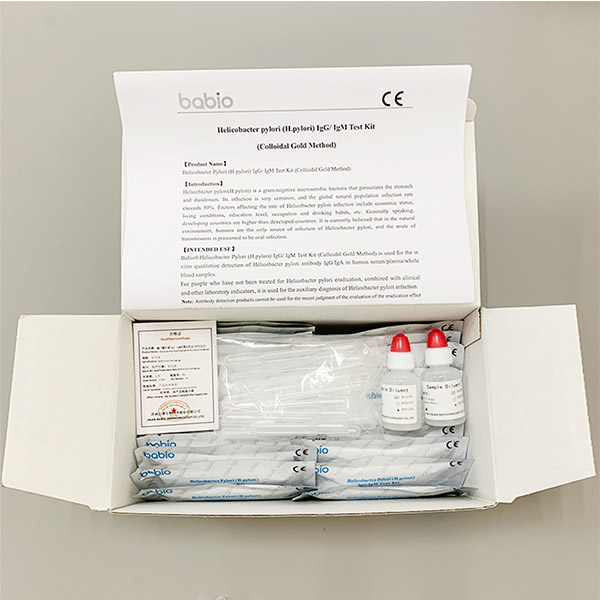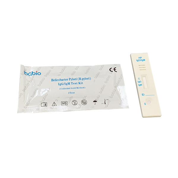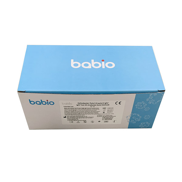 Babio®Helicobacter pylori (H.pylori) IgG/ IgM चाचणी किट (Colloidal Gold Method) चा वापर मानवी सीरम/प्लाझ्मा/संपूर्ण रक्त नमुन्यांमध्ये हेलिकोबॅक्टर पायलोरी प्रतिपिंड IgG/IgA च्या इन विट्रो गुणात्मक तपासणीसाठी केला जातो. हेलिकोबॅक्टर पायलोरी निर्मूलनासाठी उपचार न केलेल्या लोकांसाठी, क्लिनिकल आणि इतर प्रयोगशाळा निर्देशकांसह, हेलिकोबॅक्टर पायलोरी संसर्गाच्या सहायक निदानासाठी वापरले जाते. टीप: हेलिकोबॅक्टर पायलोरीच्या निर्मूलन प्रभावाच्या मूल्यांकनाच्या अलीकडील निर्णयासाठी अँटीबॉडी शोध उत्पादने वापरली जाऊ शकत नाहीत.