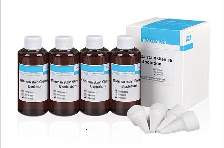 दGiemsa डाग giemsa b सोल्यूशनमिथिलीन ब्लू डेरिव्हेटिव्ह्ज (जसे की अझर बी) आणि इओसिन यांचे संयोजन आहे, सेल्युलर स्ट्रक्चर्स आणि गुणसूत्र बँडचे दोलायमान, निवडक डाग तयार करण्यासाठी अनुकूलित आहे. ही अभिकर्मक किट येतेसोल्यूशन ए (जिमसा डाई)आणिसोल्यूशन बी (फॉस्फेट बफर, पीएच 7.2)इष्टतम डाग अटी सुनिश्चित करण्यासाठी.